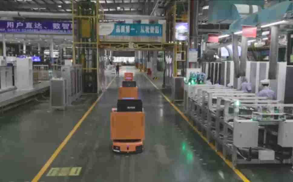 为车载冰箱物流配送打造的智能解决方案,,,包含产中物流通过潜伏举升AMR搬运至线边,,产后成品物流智能仓储,,,,流程包含产中物流智能齐套入库,,,,线边安灯叫料AMR智能配送至线边,,,成品入库、、、出库,,,通过无人堆高车机器人,,,,智能仓储管理替代人工作业管理,,,实现更高存储、、、、更高效率、、、更具柔性化的解决方案。。。